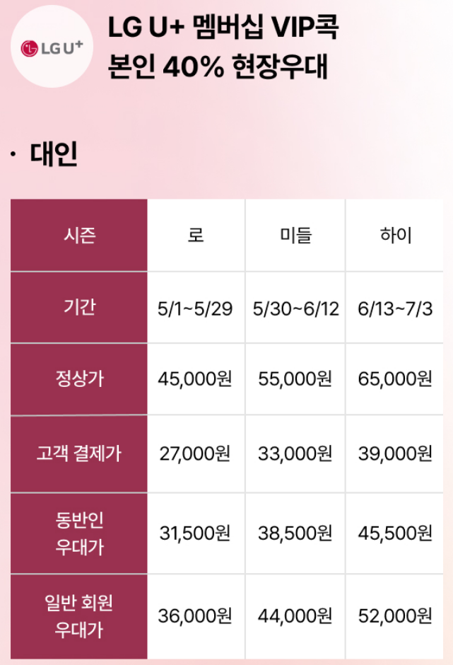 LG U+ VIP 멤버십 (현장 예매) 본인 40% 할인